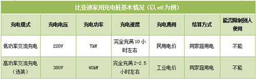 比亞迪e6目前是國內新能源車型中續航最長的車型,同時也是慢充時間最長的車型之一。如果需要安裝高功率交流充電樁,可進行選裝價格為1.25萬元,并且需要注意的是快充用電價格為工業用電價格。