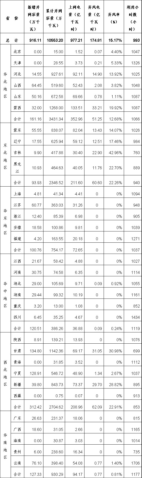 能源局發(fā)布2015上半年全國風(fēng)電并網(wǎng)運行情況