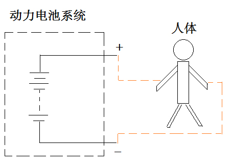 · 正負極與殼體的絕緣都失效,動力電池系統的外殼不同部位帶電且電位不等(電位差大于60V),人體同時接觸到這兩個帶電部位,構成放電回路