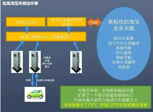 而BAT如果以車聯網作為入口,那要整合充電樁運營那是很容易的事情,比如阿里,以現有的商業架構和技術架構玩充電樁,就是這樣的結構: