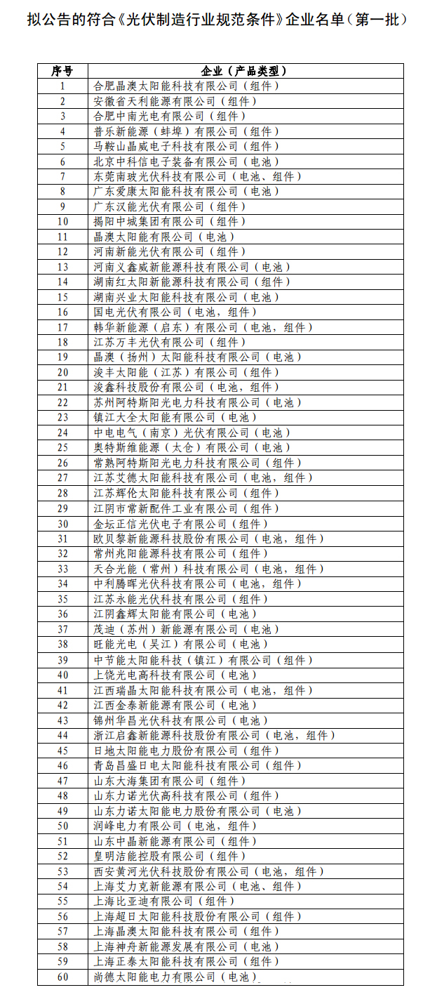 工信部公布第四批符合《光伏制造行業(yè)規(guī)范條件》企業(yè)名單