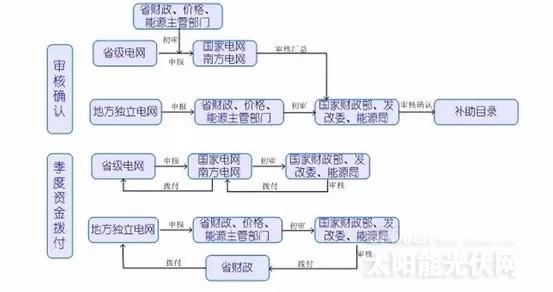 通過(guò)并網(wǎng)驗(yàn)收后的分布式光伏發(fā)電項(xiàng)目逐級(jí)向經(jīng)同級(jí)財(cái)政、價(jià)格、能源主管部門(mén)審核后逐級(jí)上報(bào)。電網(wǎng)匯總后上報(bào)財(cái)政部、國(guó)家發(fā)展改革委、國(guó)家能源局對(duì)報(bào)送項(xiàng)目組織審核,并將符合條件的項(xiàng)目列入補(bǔ)助目錄予以公告。