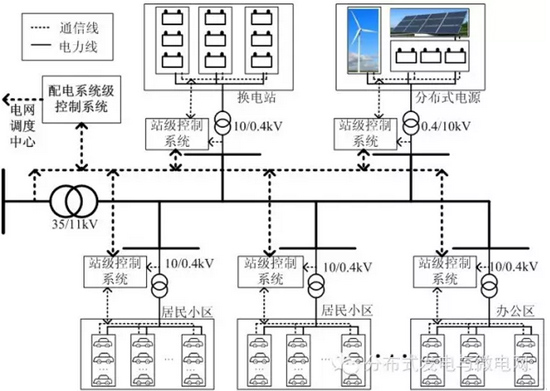 電動汽車和分布式電源是未來智能配電網中必不可少的負荷和電源,如何對這些元件進行合理的調度是一個至關重要的研究課題。鑒于上述研究中的不足及研究思路,本文提出一種分層有序充電控制架構,在配電網建立兩層控制系統:配電系統控制系統和站級控制系統,給出了相應的控制模型,能夠在與傳統電網控制架構融合的基礎上,實現配電網范圍內電動汽車與分布式可再生電源的協同有序控制。