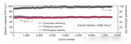 為測試電池在不同狀況下的使用壽命,斯坦福的研究人員對電池進行了數(shù)千次一分鐘內(nèi)的快速充放電。在超過7500次的充放電循環(huán)里,研究人員發(fā)現(xiàn)電池容量基本沒有損耗。