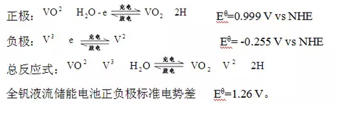 全釩液流儲(chǔ)能電池正極電對(duì)為VO2+/VO2+,負(fù)極電對(duì)為V2+/V3+,電極發(fā)生如下電化學(xué)反應(yīng):