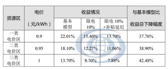 因此,本文針對補貼延遲對收益的影響也進行測算。在考慮各資源區項目10%限電的情況下,假設首年發電補貼收入按18個月后結算,第二年至第三年按12個月后結算計算資本金內部收益率,結果如下: