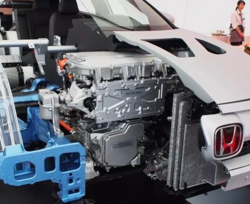燃料電池堆與2008年開始租售的FCV“FCX Clarity”相比,電流密度提高了50%,從而將層疊的電池單元數量削減了30%。另外,通過將每個電池單元之間的間隔減至1mm,將層疊尺寸削減了20%。由此實現了燃料電池堆的小型化。燃料電池堆的輸出密度為3.1kW/L,達到全球最高等級。