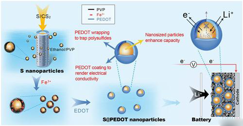 納米硫陰極材料可以帶來高達1672毫安/克的理論容量,這對于下一代電池來說很有吸引力。不過在實際應用中,高電阻、低載荷活性物質以及充放電時電解質中間聚硫化物分解等問題仍然帶來了不小的挑戰,這些問題會導致庫侖效率下降、電池容量損耗加快,同時也會發生自放電現象。
