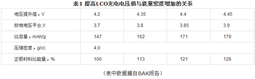 圖2 鋰離子電池比能量提升路徑(提高電壓或/和提升比容量)示意圖(摘自日本大金報告)