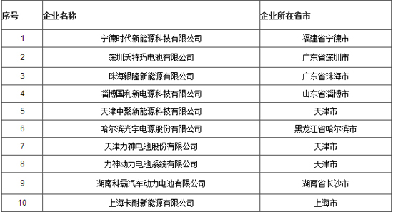 符合《汽車動力蓄電池行業(yè)規(guī)范條件》企業(yè)目錄(第一批)