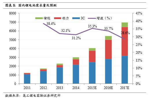 國聯證券預計,未來三年國內動力電池產能將達到60GWh,16、17年均新增產能有望達到 20GWh。