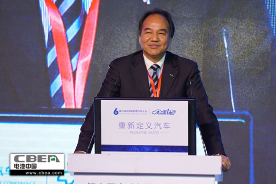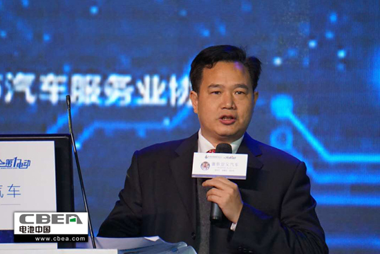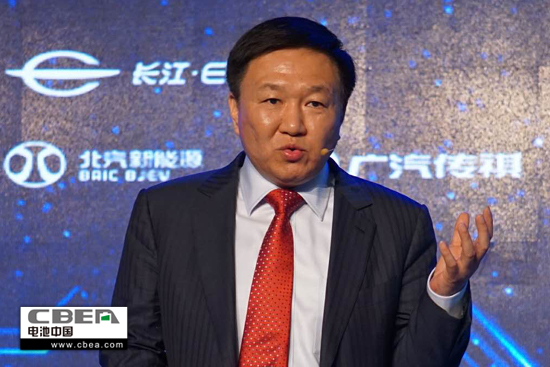 圖為北汽新能源汽車有限公司總經理鄭剛發表主題演講