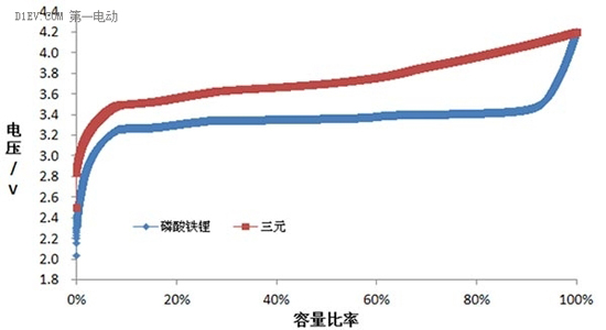 當(dāng)然,電池材料體系的選擇與消費(fèi)者關(guān)系不大,廠家往往根據(jù)市場(chǎng)趨勢(shì)和自身?xiàng)l件做出他正確的選擇,下圖是兩種材料的電壓-容量曲線。