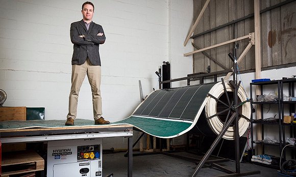 John Hingley的背包里藏著一種解決方案:一卷可以展開的輕薄太陽能面板,可隨時(shí)為手機(jī)、相機(jī)、電腦等個(gè)人電子產(chǎn)品供應(yīng)足夠電力。即使是在偏遠(yuǎn)山區(qū),這一裝置也能隨時(shí)供電。John Hingley也做出了更大膽的設(shè)想——開發(fā)出了更大版本。