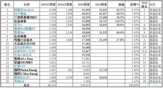 2015年全球最暢銷電動汽車銷量排名(TOP20)如上圖所示。