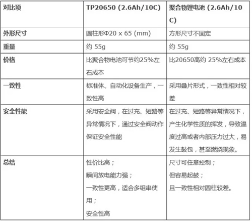 1.2 相同容量和放電倍率的情況下,和聚合物電池相比,如下表