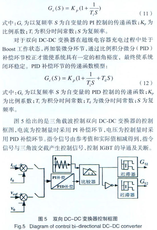 追求穩(wěn)定運(yùn)行、可靠供電的電力系統(tǒng)近幾年也引進(jìn)超級(jí)電容器作為新型儲(chǔ)能設(shè)備,使其在電力系統(tǒng)出現(xiàn)電壓波動(dòng)、短時(shí)間供電中斷等情況下快速充放電,從而保證系統(tǒng)的安全性及可靠性。目前對(duì)超級(jí)電容器在電力系統(tǒng)中應(yīng)用的研究才掀起熱潮,實(shí)用化的超級(jí)電容器充放電控制尚未成熟。本文將雙向DC-DC變換器應(yīng)用于超級(jí)電容器的充放電過(guò)程,對(duì)雙向控制模型分析,采用PWM的控制策略,并針對(duì)充放電情況的不同分別加裝PI及PID補(bǔ)償環(huán)節(jié),使系統(tǒng)比較穩(wěn)定,滿足絕大多數(shù)需要快速對(duì)超級(jí)電容器充放電的場(chǎng)合。