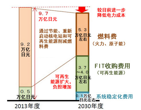 在能源結(jié)構(gòu)的討論中,將可再生能源的收購(gòu)費(fèi)用上限設(shè)定為3.7~4萬億日元(出處:經(jīng)濟(jì)產(chǎn)業(yè)省)